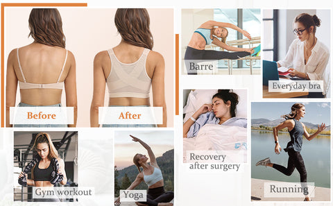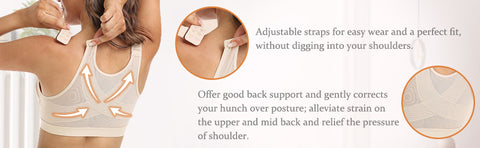 - Body Corrector: This front close bra is designed for your better posture. Specially designed X shape back linked with strap, offer good back support and gently corrects your hunch over posture; alleviate strain on the upper and mid back and relief the pressure of shoulder. Not only remind you to keep a correct posture, but also reduce the back bulge. Wearing this posture bra for a long time can help you ease neck and shoulder issues.